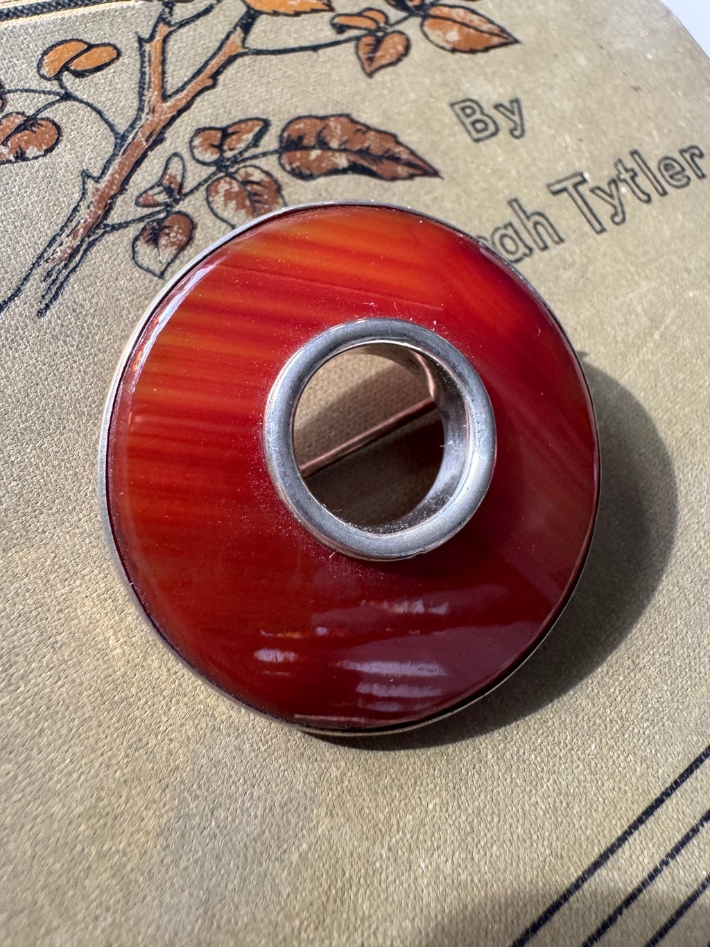 Sterling Silver Gold Plated Garnet Bar Brooch