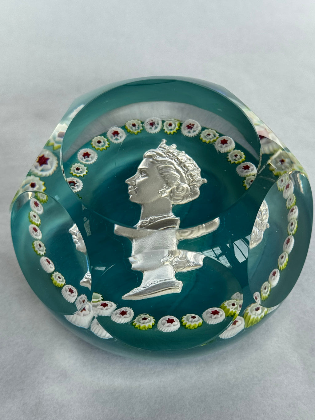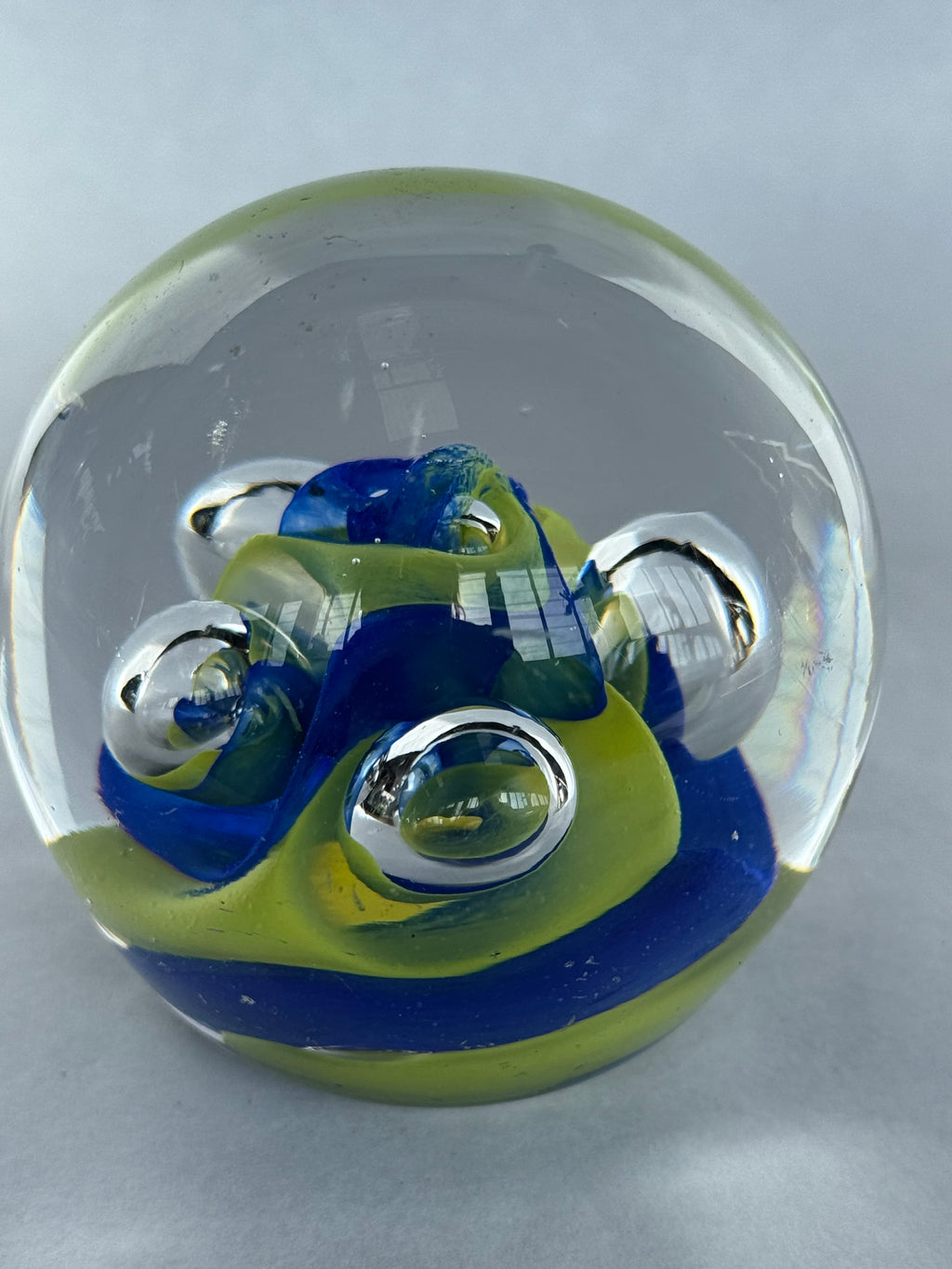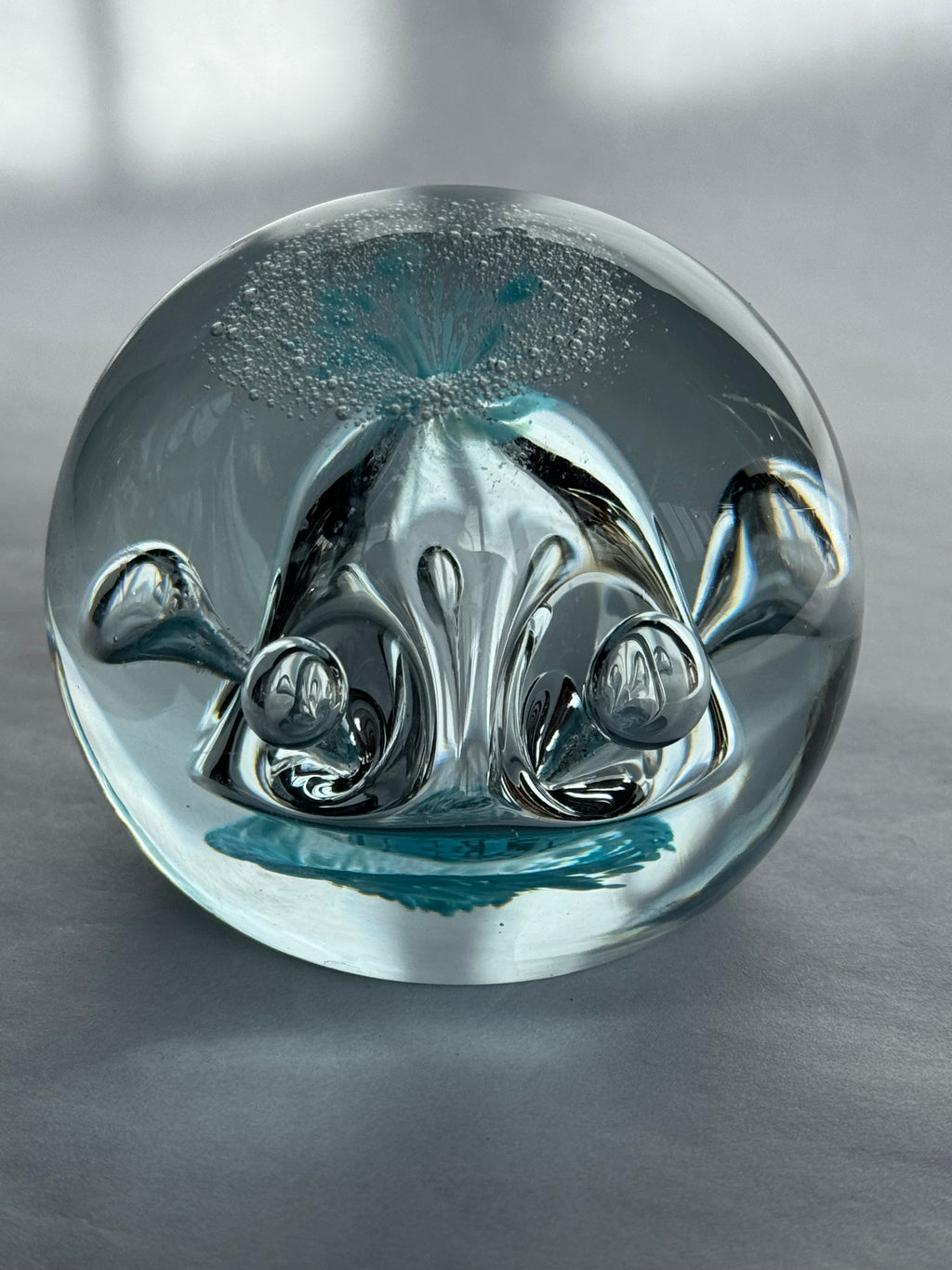 O & M Hoglund Paperweight 1981 Aqua Blue Bubbles