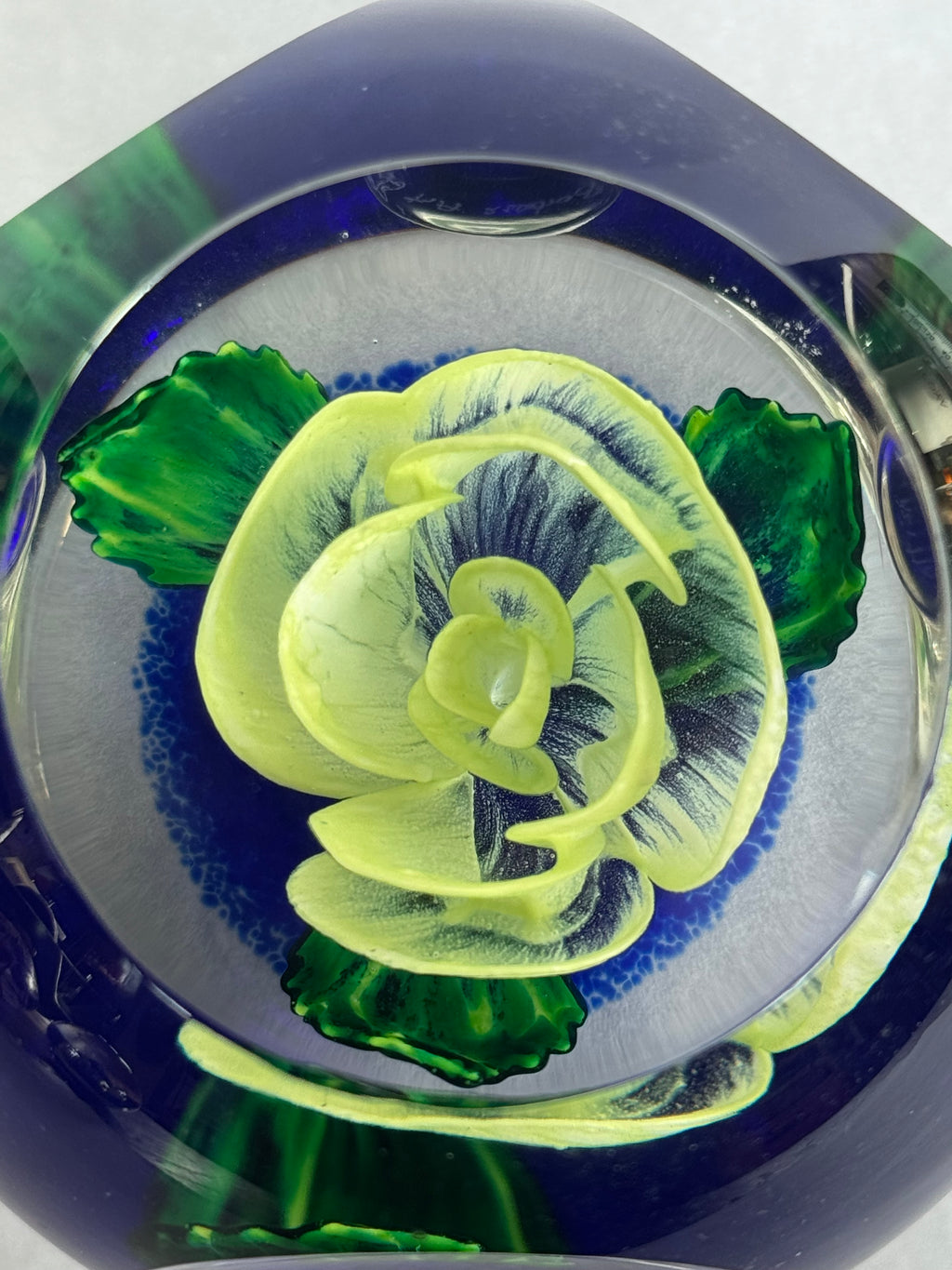 Hoglund Glass Paperweight Yellow & Lime Twist